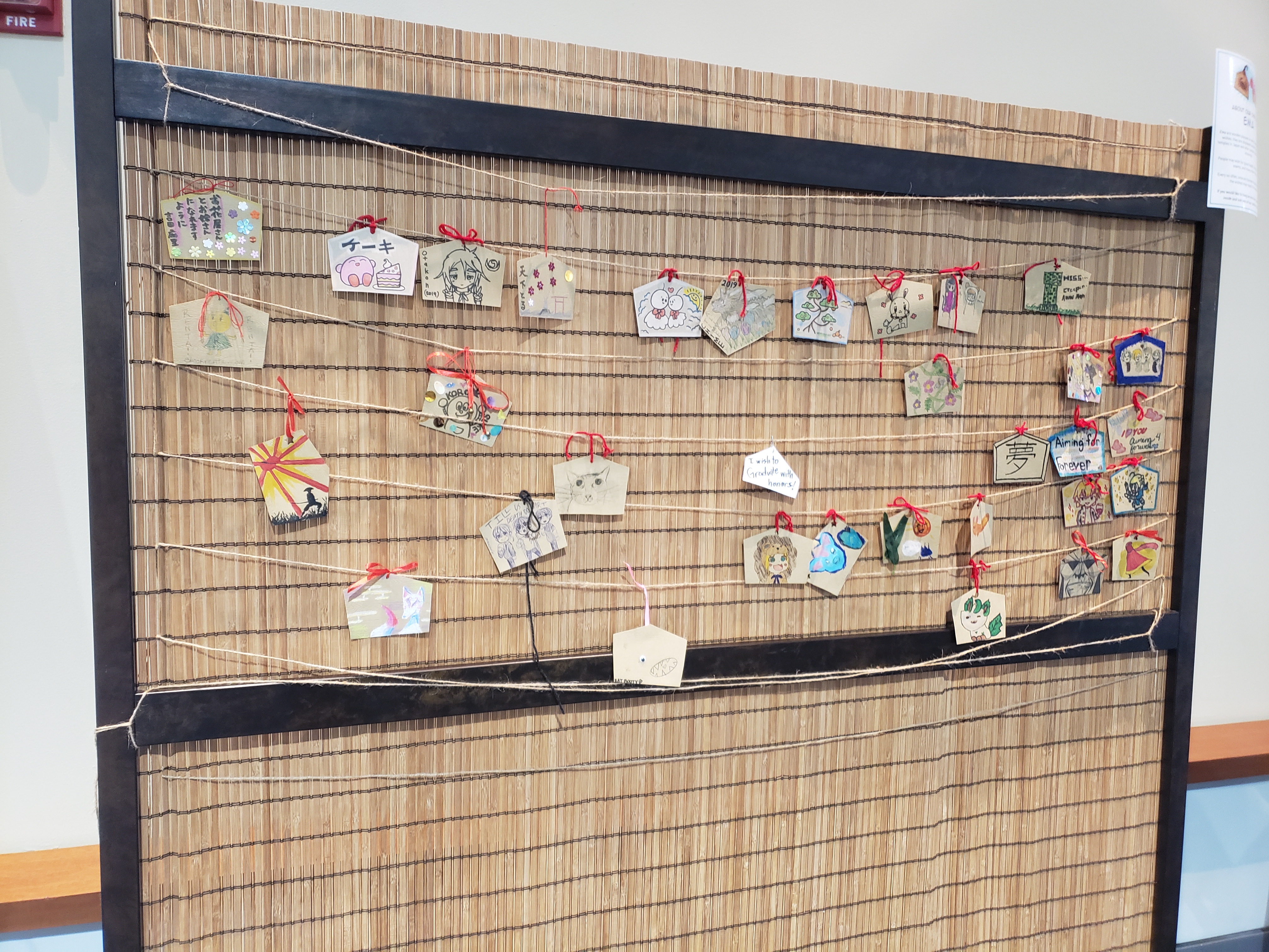 Not being particularly creative, I didn’t think this room would appeal to me. But now that I stood right in front of it, I could feel peace and calm radiating from this room, and everyone looked so happy. I had to go in. There were folks sitting at round tables working on various projects. You could sit wherever, and people were happy to say hi and chat. The staff was friendly and were there to assist if we needed help conceptualizing our ideas. They even had a wheel if you were stuck for ideas. Tons of materials were available for us to use for our projects; scissors, hot glue guns, cardboard, markers, crayons, ribbons, paint, felt, and so much more! It was extremely well organized. And there was a wide variety of origami paper if you felt inclined. I really enjoyed myself and I felt rejuvenated when I left. I decided to make an EMA. (No I don’t think it’s a coincidence EMA is also the abbreviation for the blog Empath Meets Anime lol).