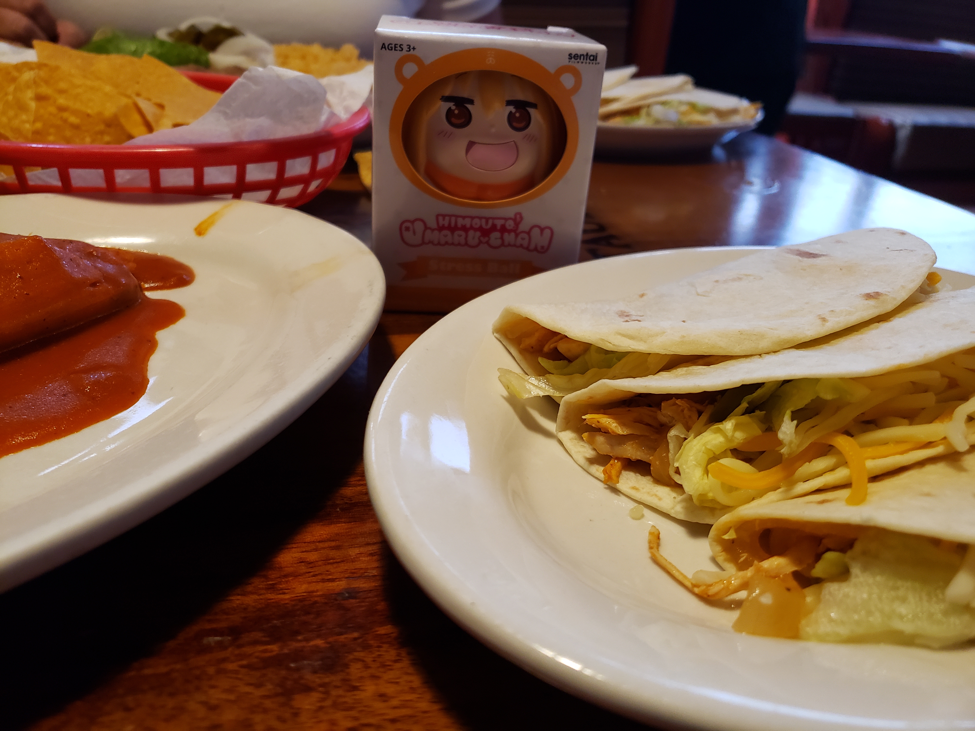 The Lyft ride after Otakon granted me wonderful views of the sky and it made me appreciate what a great experience I had. Afterwards, I went to a Starbucks and the cashier saw my shirt and lanyard and exclaimed how excited she was Otakon was this weekend. Later at dinner, I presented my friend with the Umaru-chan stress doll I bought her. Umaru-chan looked happier than me at the prospect of a yummy dinner!