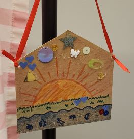 Not being particularly creative, I didn’t think this room would appeal to me. But now that I stood right in front of it, I could feel peace and calm radiating from this room, and everyone looked so happy. I had to go in. There were folks sitting at round tables working on various projects. You could sit wherever, and people were happy to say hi and chat. The staff was friendly and were there to assist if we needed help conceptualizing our ideas. They even had a wheel if you were stuck for ideas. Tons of materials were available for us to use for our projects; scissors, hot glue guns, cardboard, markers, crayons, ribbons, paint, felt, and so much more! It was extremely well organized. And there was a wide variety of origami paper if you felt inclined. I really enjoyed myself and I felt rejuvenated when I left. I decided to make an EMA. (No I don’t think it’s a coincidence EMA is also the abbreviation for the blog Empath Meets Anime lol).