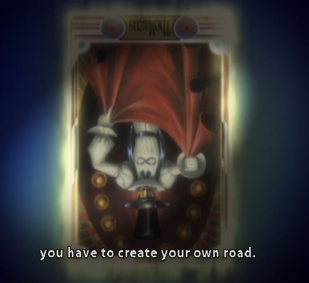 But the character I really want to talk about is Sora’s “spirit guide”, Fool. Or as he says, he’s the spirit of the stage. But I suspect he may be a creeper.