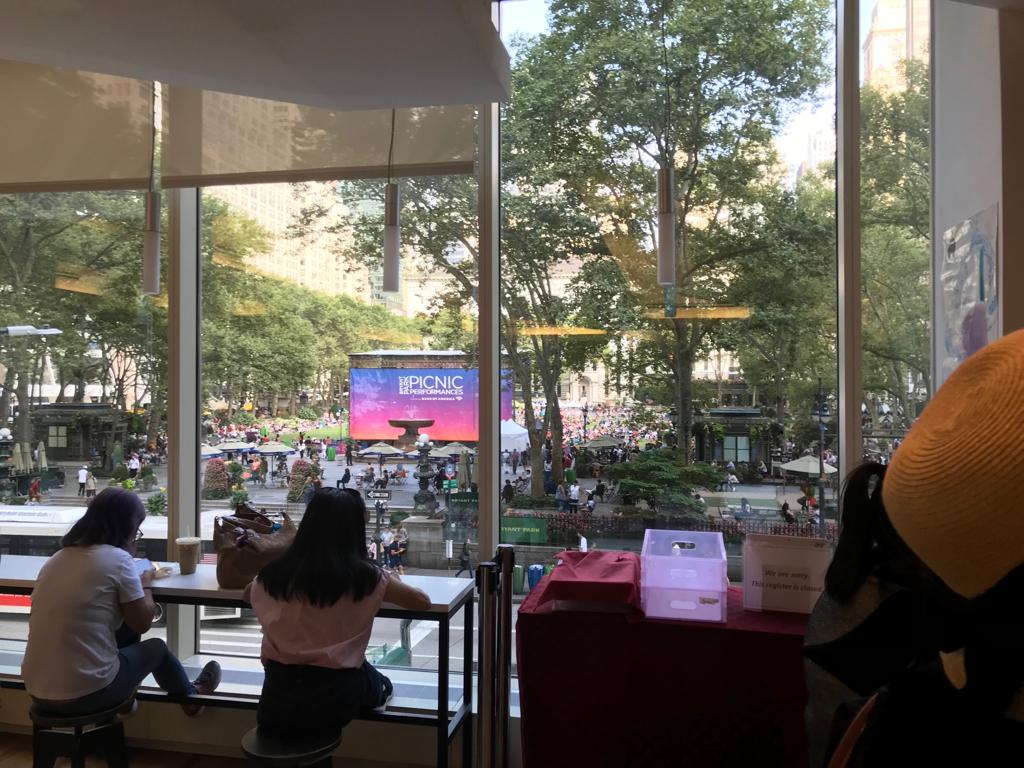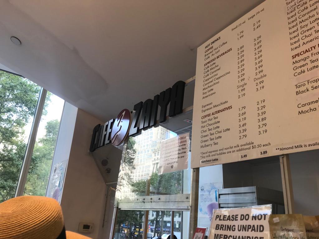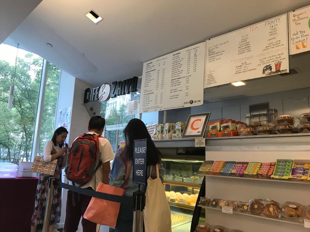 Cafe Zaiya is in the Kinokuniya Bookstore. I just got onigiri and a jelly cat. It was a yummy snack! Plus this cafe has a great view of Bryant Park.