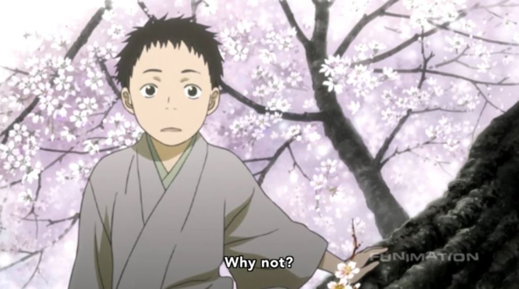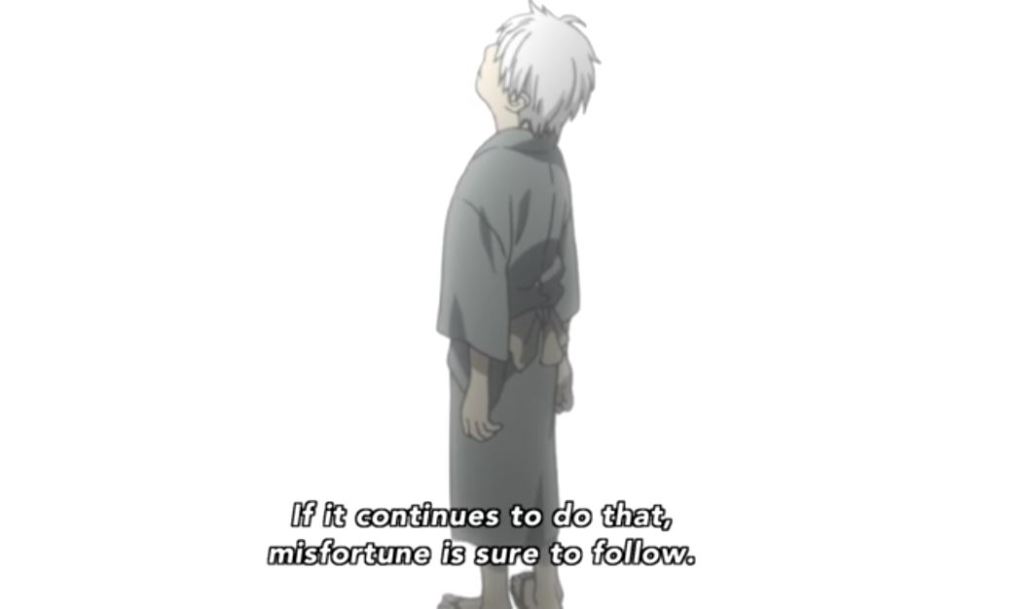 Even as a child Ginko knew staying in one place too long wasn’t a good idea. It could bring trouble to the folks kind enough to welcome him into their town, as evidenced from an earlier episode when Ginko was saved by a Good Samaritan.