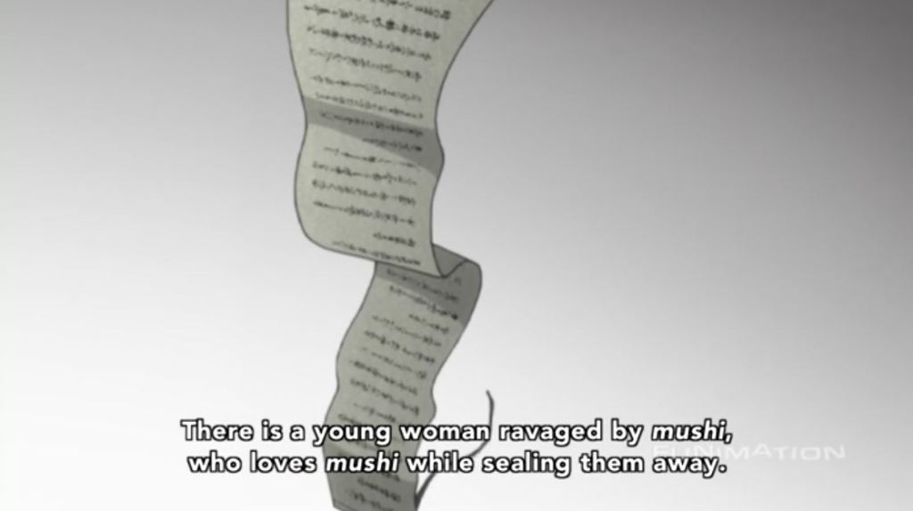 Ginko is going out to search for clues to the cause of Miharu’s hibernation. Of course mushi are involved.