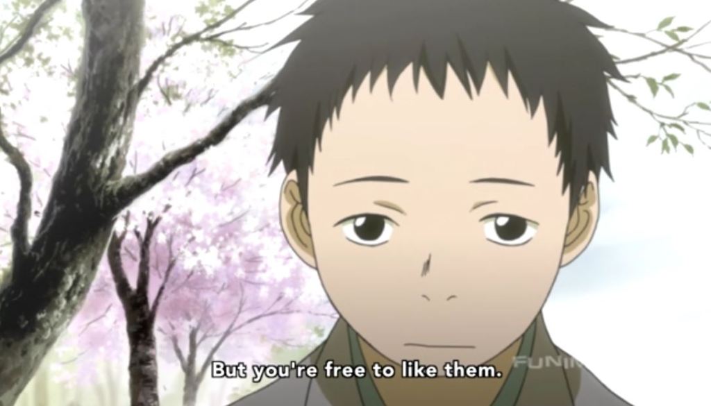 If Suzu was the one to have a home with, Tanyuu was the one to travel with. Ah Ginko. But I get it ladies, I see the appeal. He’s stoic, helps others (people and mushi alike), and has a calming presence.