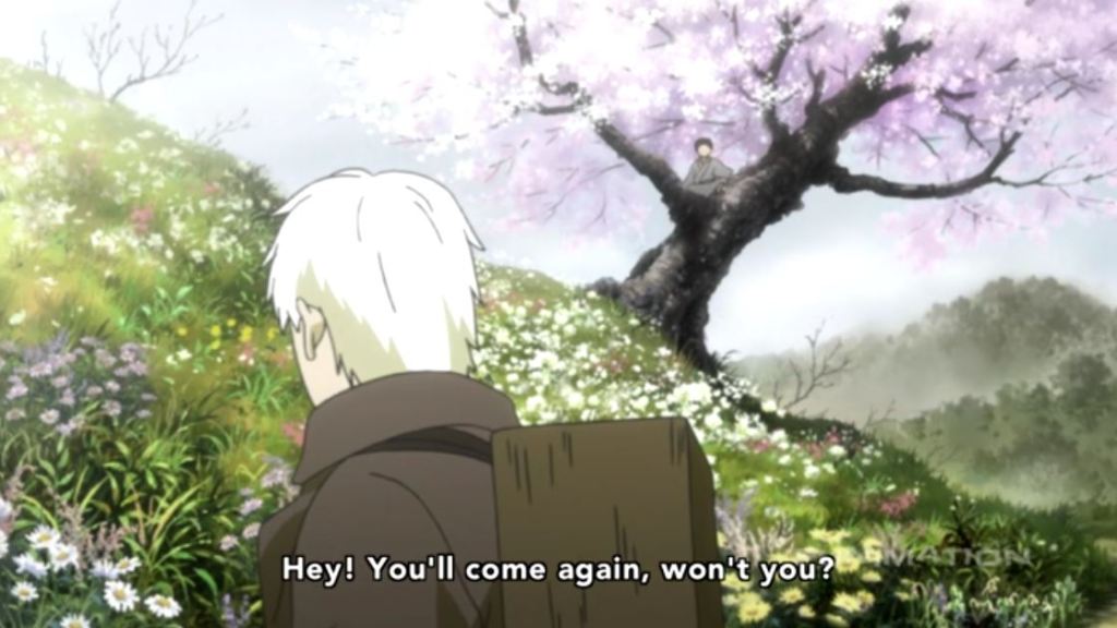 You can tell Ginko doesn’t want to leave and Suzu definitely doesn’t want him to leave. Miharu enjoys Ginko’s company as well. Unfortunately things being what they are, he doesn’t have a choice. Even the mushi repellent that was in an earlier episode would be a temporary fix and not a long term solution. That house near the mountains, with Suzu and Miharu, provided warmth in more ways than one.