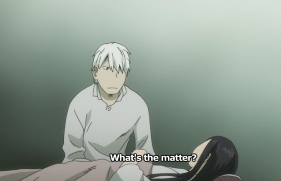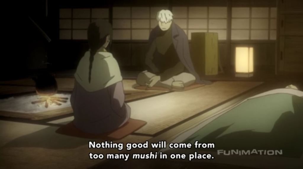 Ginko knows attracting more mushi won’t be helpful to Miharu or his sister Suzu.