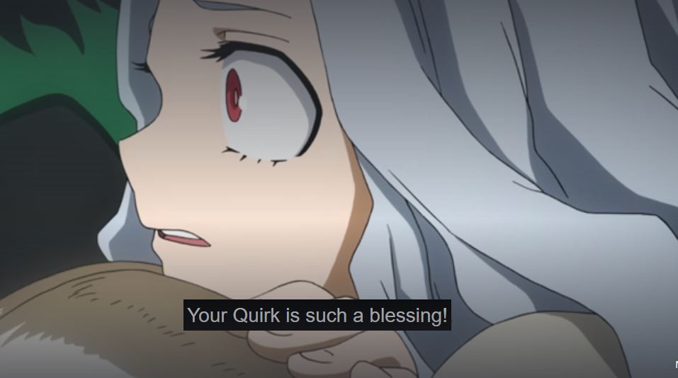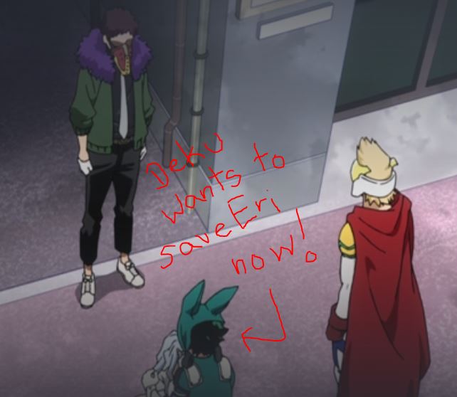 Thank goodness for Aizawa and his quirk! If it wasn’t for his subtle finger motion to Froppy (or as Amajiki cutely called her, “Miss Ribbit”), and her lifting Aizawa’s head, Eri’s quirk may’ve caused irreversible damage to Deku. During Deku’s fight with Chisaki, Eri’s quirk was the only thing allowing him to fight at 100%. But being able to control her quirk, is something Eri still needs to learn (similar to Deku’s hurdle when he first used One for All). Eri develops a fever after the fight and is later quarantined in the hospital. Since Aizawa is the only one able to stop Eri if her quirk gets out of control, keeping her quarantined will let them assess the situation, and hopefully be able to work with her as she learns to regulate her quirk safely.