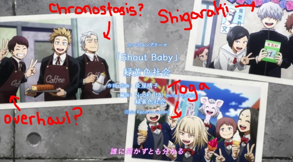 The villains look happy and dare I say, not corrupted? What happens to people and characters that put them on a dark path? Is it a major incident? Is it life circumstance? One small thing leads to another? Negative influences? Lack of morals? Survival tactics? Etc? At one point they were just having fun with friends at a festival. I do want to know who is in these photos, like that little girl in the door frame by Shigaraki.