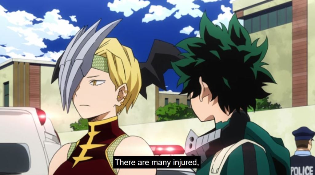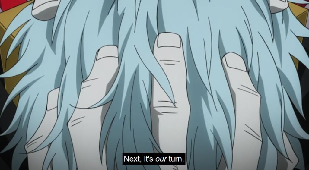 Meanwhile, Shigaraki and the League of Villains are causing mayhem on the highway. What an ominous scene of the three of them walking. I’ll write a proper post on one hero’s ultimate sacrifice shortly. I’m watching on Hulu. Check it out if you haven’t already!