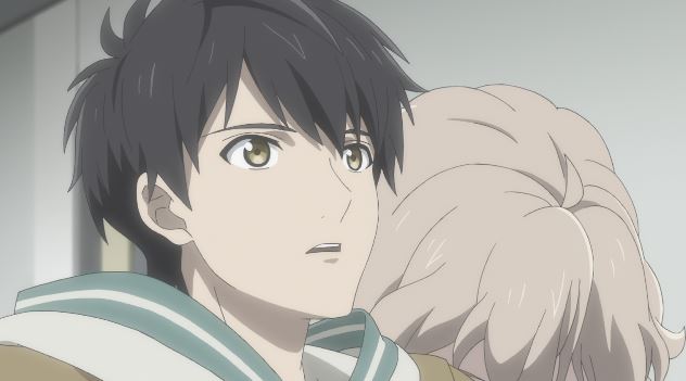 Senpai (aka Nagi) and Hodaka talking on the bleachers, when Nagi says he knows how much his older sister sacrifices to take care of him and he wants her to be happy