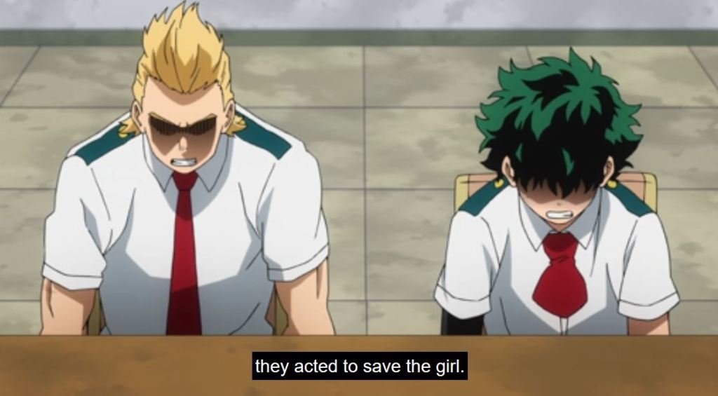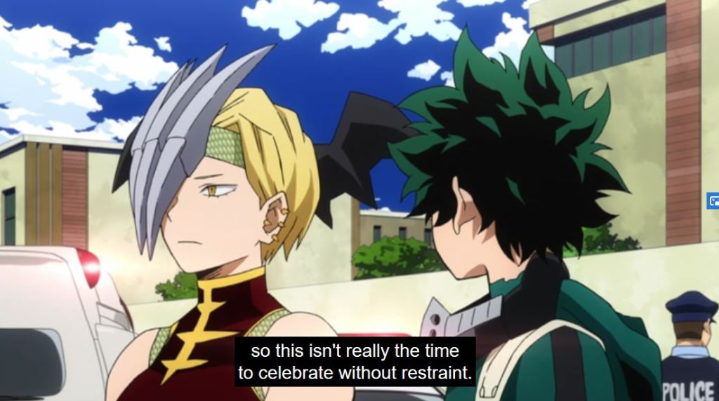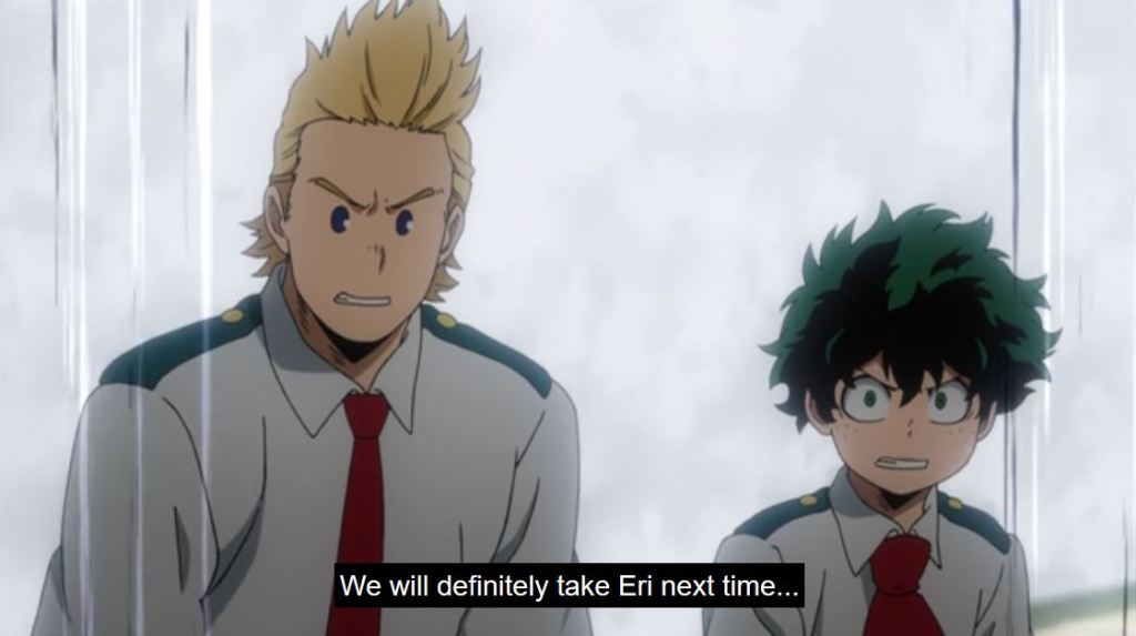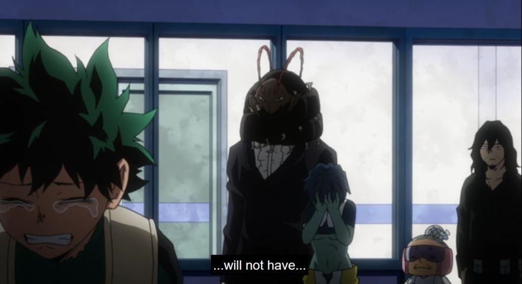 The crew at Popped Off (@Popped_Off) made an interesting point on their podcast for this episode, which was the girls (Hado, Tatsuma, Froppy, Uravity,) did not have as in depth an episode like the guys did (Amajiki, Togata, Red Riot). While the argument can be made that Froppy basically had her own episode in an earlier season, and generally Uravity gets a chunk of screen time, it is a valid observation. I hope we’ll learn more about Tatsuma and Hado in a future episode.