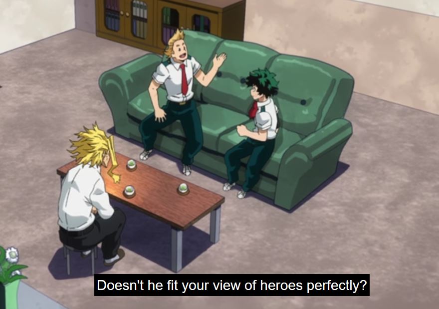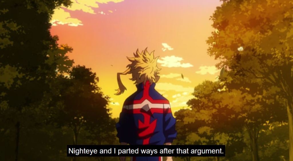 Having been a sidekick to All Might for years, there is history between them. Sir Nighteye saw with his Foresight, that All Might would die a gruesome death at the hand of a villain, and he wanted him to find a suitable heir and retire. At that point in time, Sir’s Foresight had never been incorrect, so there wasn’t a precedent for the future being any different. They also disagreed with who should succeed him as the Symbol of Peace.