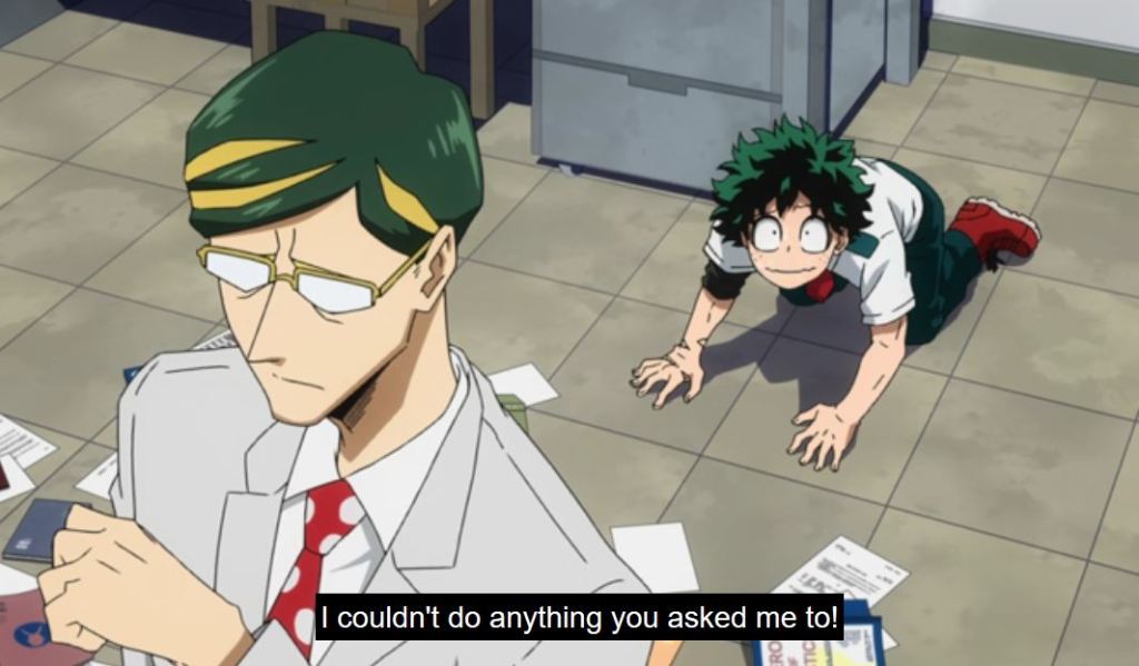 There would’ve been more damage and injury during Deku’s battle with Chisaki, but Deku was very mindful of the environment he was battling in, so the damage was minor. This reminded me of his earlier interaction with Sir Nighteye, when he was trying to grab the stamp from his hand. Deku was unable to get the stamp, but he did impress Sir by avoiding any damage to his All Might collector items.