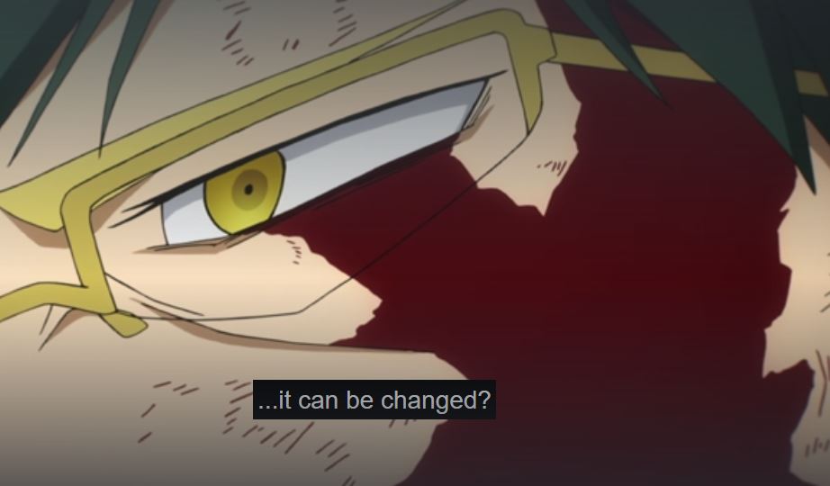 Nighteye learned that his foresight isn’t 100%. Unforeseen circumstances can change the future, like Eri’s quirk. It was shocking to see how defeated he was, granted Nighteye had a giant slab of rock through his body, but his gloominess and pessimistic attitude seemed unusual for a pro hero. The last scene of the episode, when he realizes that his predictions aren’t guaranteed, likely gave him hope that All Might may have a brighter future ahead.