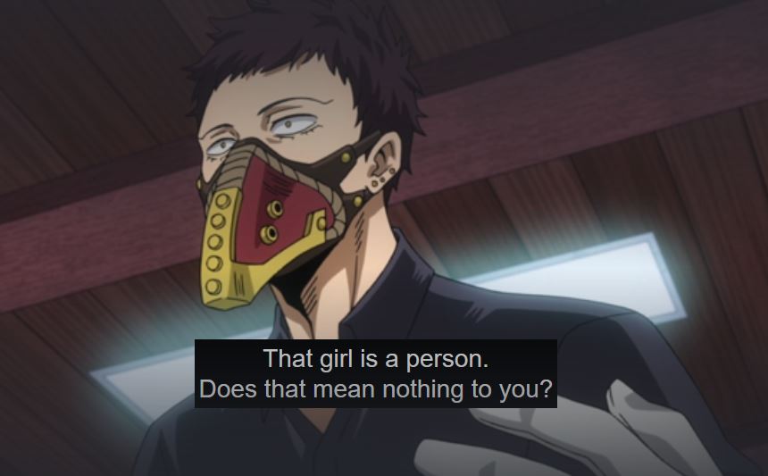 Chisaki. Really. This guy takes you in, treats you like one of his own, asks you to watch after his granddaughter that was abandoned by her mom, and to learn about her quirk. Instead you do gruesome experiments on her, abuse her, and use her for actual ammunition and as a pawn in your game. After your mentor, the one who took you in, tells you to stop and reminds you that his granddaughter Eri is a person, you put him into a coma saying you’ll revive him once your grand plan is achieved. That’s one hell of a thank you. Even Shigaraki wouldn’t have done that to his mentor! I know these are villains but I don’t know what Chisaki was thinking.
