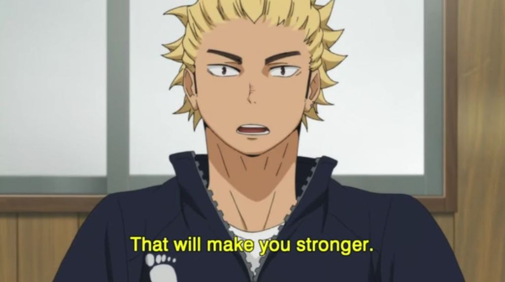 True. But it’s up to us how we choose to react to it and how we handle the situation. Check out how the Karasuno Crows handle their stress, on Hulu!