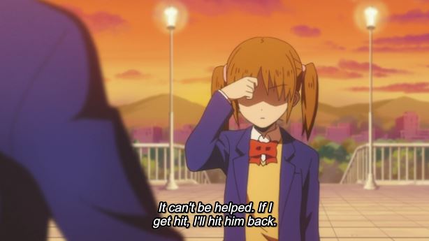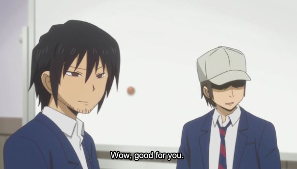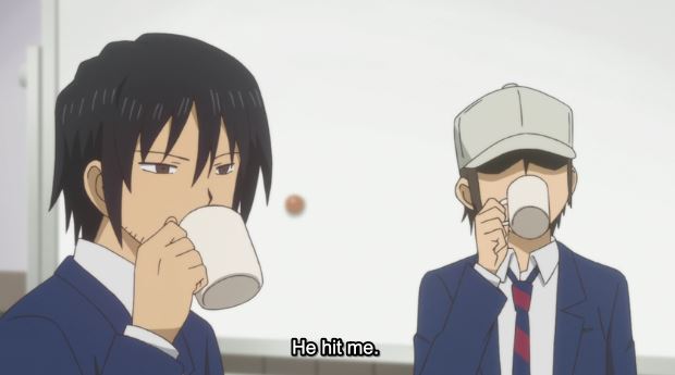 Daily Lives of High School Boys is a comedy/slice of life that I’m watching on VRV / Crunchyroll. Usually the boys find themselves in funny or awkward situations. But this episode was more serious and heart-felt. Tadakuni has a little sister, and she has a problem. She goes to her brother’s friends to ask for help. A boy confessed to her, she refused him, said she was lippy to him, and then he hit her. Regardless of whatever she said, he should not have hit her. However, having watched the previous episodes, I know the little sister hits Tadakuni and his friends all the time. They never hit her back. Be that as it may, when she asks for help from Tadakuni’s friends, even though they’ve been on the receiving end of her blows, they go straight into Papa Bear mode. They even break their mugs they’re so irate that someone would hurt her.