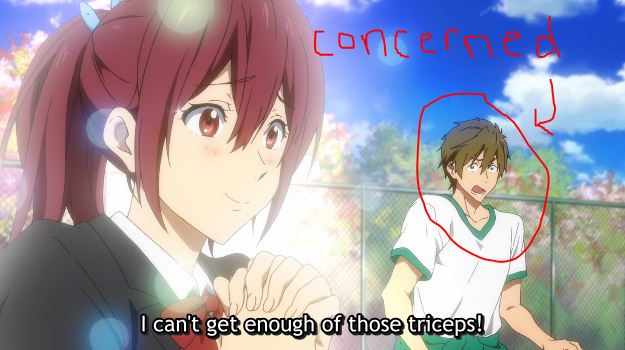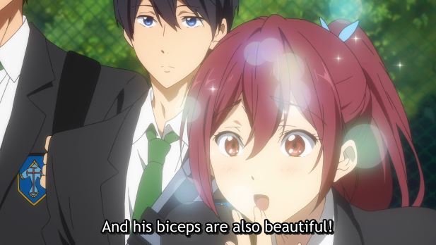 After seeing how Gou Matsuoka was oogling Haruka Nanase, and other swimmers, they may want to reconsider having her as their manager! Creepers can be ladies, not just men. Let’s be glad she didn’t get a nosebleed. Shameless!