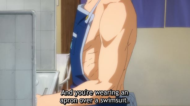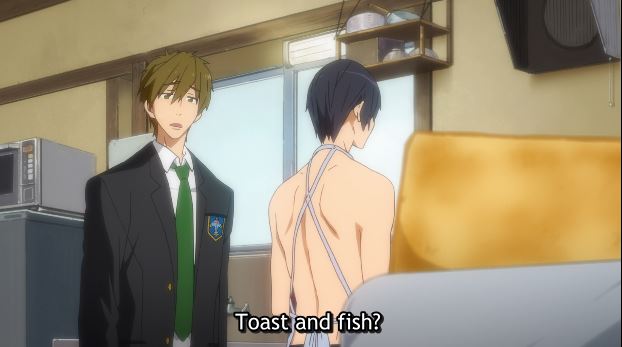 I just started watching Free! on VRV / Crunchyroll. It’s a sports anime about swimming. When I was at Otakon last year, I met a nice Mother and Daughter who I ate dinner with (they were visiting from PA), and they recommended this anime. I’m only five minutes into the first episode. But is this fellow older now, and out of college? And available in real life? He can make breakfast for me anytime. I’ll eat fish on toast.