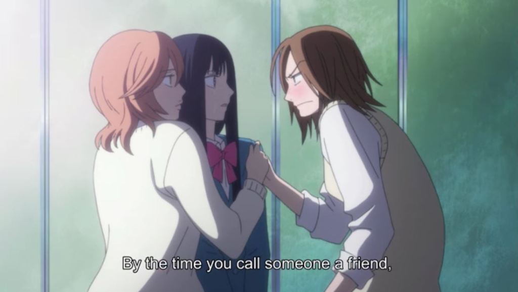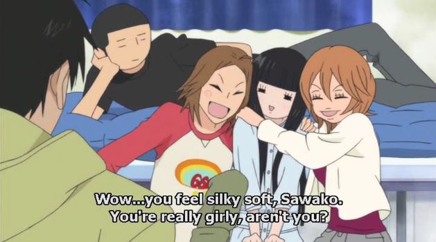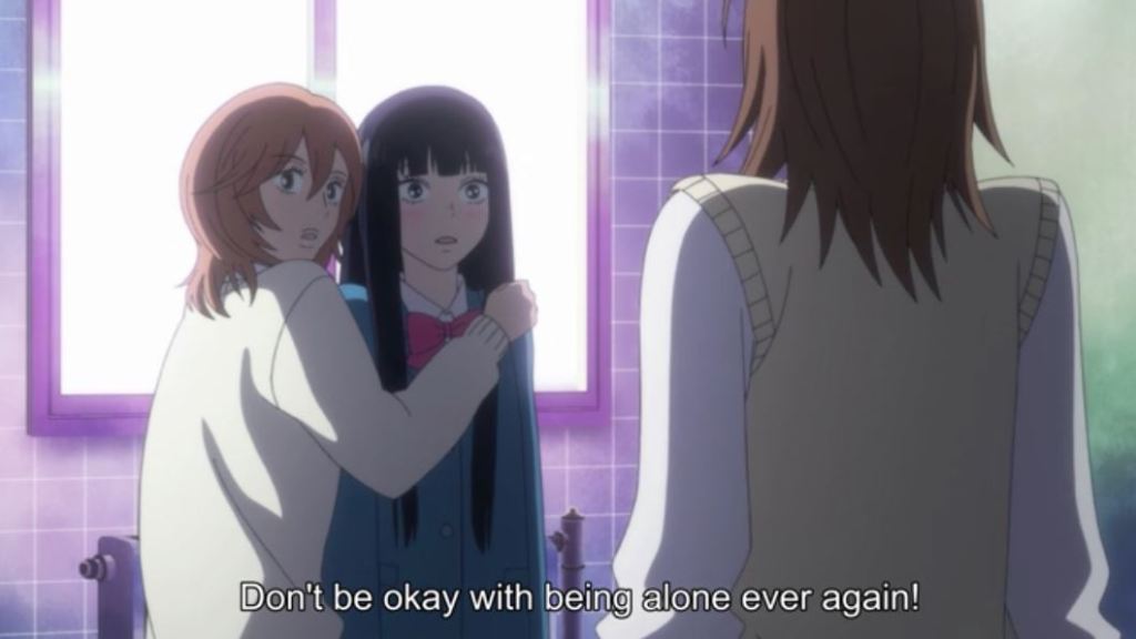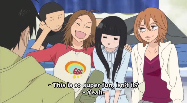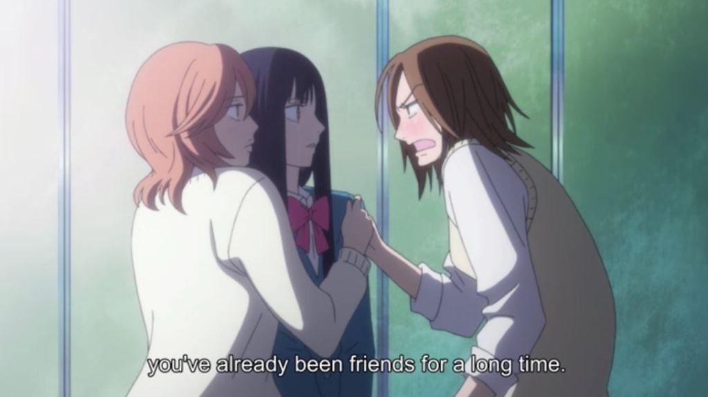 Ayane Yano, Chizuru Yoshida, and Ryu Sanada are in Kuronuma’s friend circle too. They, and Kazehaya, have all stood up for Kuronuma. She was the subject of bullying (especially the behind the scenes type of bullying girls are notorious for, if you’ve seen Mean Girls, or are a girl yourself, you’ve likely seen this behavior). I’m only on episode eight of the first season, but some of the ways they’ve stood up for her include; Kazehaya standing up to the class when they make rude comments about Kuronuma from the night of the Test of Courage, when he says aloud for the bullies to hear that he detests hateful gossip, when Yano, Yoshida, and Kazehaya move their seats next to Kuronuma when others avoided her (Sanada I suspect just wanted the window seat but he didn’t avoid her like the others), the girls stood up for her when she was cornered by the bullies in the ladies room, and when asked his thoughts on Kuronuma and the rumors, Sanada pointed out the unrealistic possibility of that being remotely true. Being a good friend to another person, means being a good friend to them even when they’re not around. Kuronuma’s close friends love and care for her, and they don’t give the opinions of others a second thought. Knowing all of the hurdles she’s overcome and how lonely she felt, especially with everyone calling her Sadako (from The Ring), it’s wonderful to see her finally happy. One other comment, about the bullying scene from the bathroom, sometimes intervention depends on a person’s comfort level. While Hirano and Endo didn’t feel physically, emotionally, or mentally capable of taking on the group of girl bullies, they did run to get help. Standing up for your friends can be expressed in various ways. Yes it might’ve been more helpful if they had directly intervened, but it makes me think of all the others who saw Kuronuma bullied over the years who did absolutely nothing. Seeing how Yoshida and Yano stood up for her, Kuronuma finally realizes they are friends, and have been friends all along.