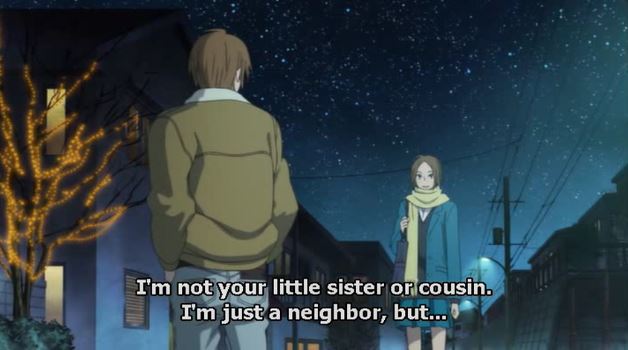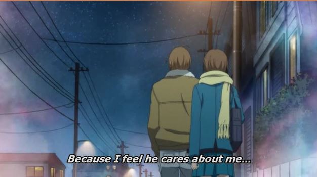 I’m watching the scene in episode twenty-one, of season one, of Kimi ni Todoke where Chizuru Yoshida is walking with Ryu Sanada’s older brother, Toru. She’s loved Toru for years and years. He’s always viewed her as a little sister, but she hoped one day he’d view her as a woman he could love. I griped in an earlier post about the horrors of secondhand embarrassment in this anime. But the very real, very relatable feelings, of loving someone who doesn’t love you (or the closely related feeling of doesn’t love you anymore), that gut-wrenching feeling, one has watching this scene is way worse.