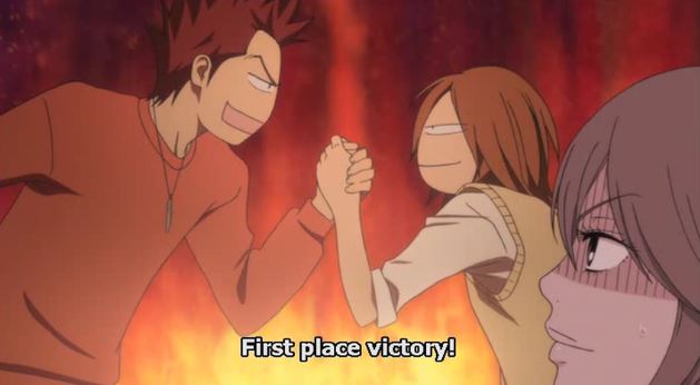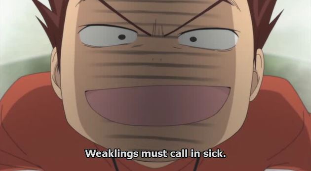 This shoujo anime, Kimi Ni Todoke, has humor. Not as much as others I’ve watched in the past, but the parts that are funny make me laugh out loud. Try to overcome the hurdle of the horrible secondhand embarrassment that this show has so much of. I haven’t felt this much embarrassment since watching Ookami Shoujo to Kuro Ouji. Here is a funny moment from episode eight of the first season. The class is discussing the upcoming Sports Festival with their teacher, Pin. I suspect if I was in their class, Pin would strongly encourage me to take a sick day (the nerve!).