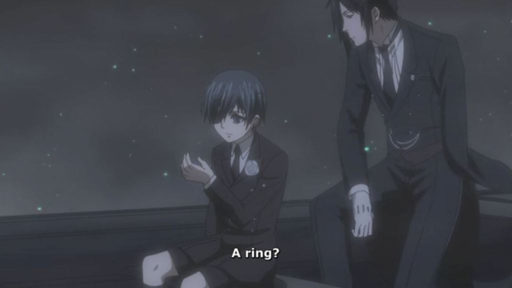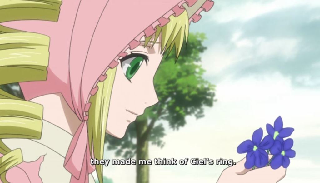 Lizzie’s feelings for him made one final appearance, as the blue flower ring, that blew away in the wind made it’s way to Ciel.