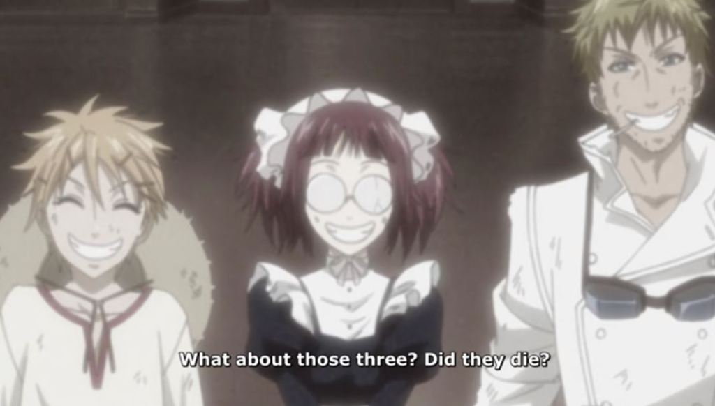 The heroic scene, where Fred Abberline saves Ciel Phantomhive was riddled with irony. I was disgusted with Sebastian as he was in no rush to prevent Abberline’s death. Sebastian is a demon and could’ve easily thwarted the attack. But his inaction, was a reminder that he is a demon, with no regard for human life. Sebastian ascertained quickly that Abberline would save Ciel, even at his own peril.