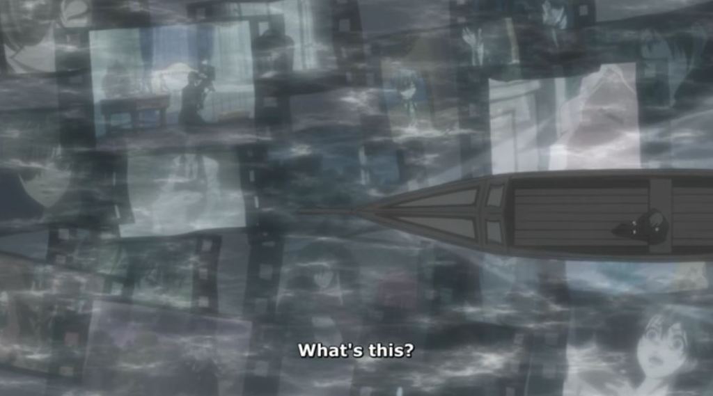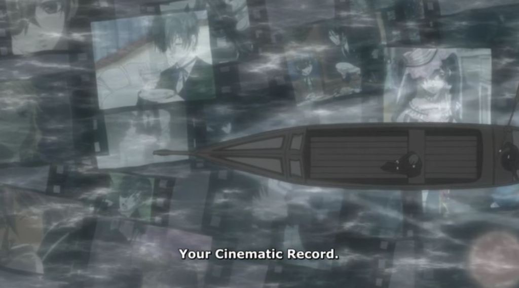 Sebastian pulls Ciel from the water, and later he wakes up in a boat. On the cusp of death, Ciel realizes he is inching towards the inevitable. As his cinematic reel plays around him (scenes from his life), he thinks about Lizzie, and wonders how his employees and Pluto are.