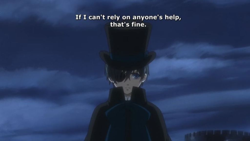 Ciel Phantomhive, was focused on his mission to pay retribution to those responsible for the death of his parents. He even made a pact with a demon (Sebastian) to reach his goal. Despite making a deal with the devil, there is part of Ciel that remains very human. The desire for revenge has not made his heart completely cold. He shows warmth and patience towards Lizzie, his fiancée. He is forgiving towards his staff for their blundering ways. And Ciel does care about other people, although he tries to hide how big his heart truly is. If you haven’t seen Black Butler, it’s on Hulu. You may like it if you enjoy supernatural mysteries.