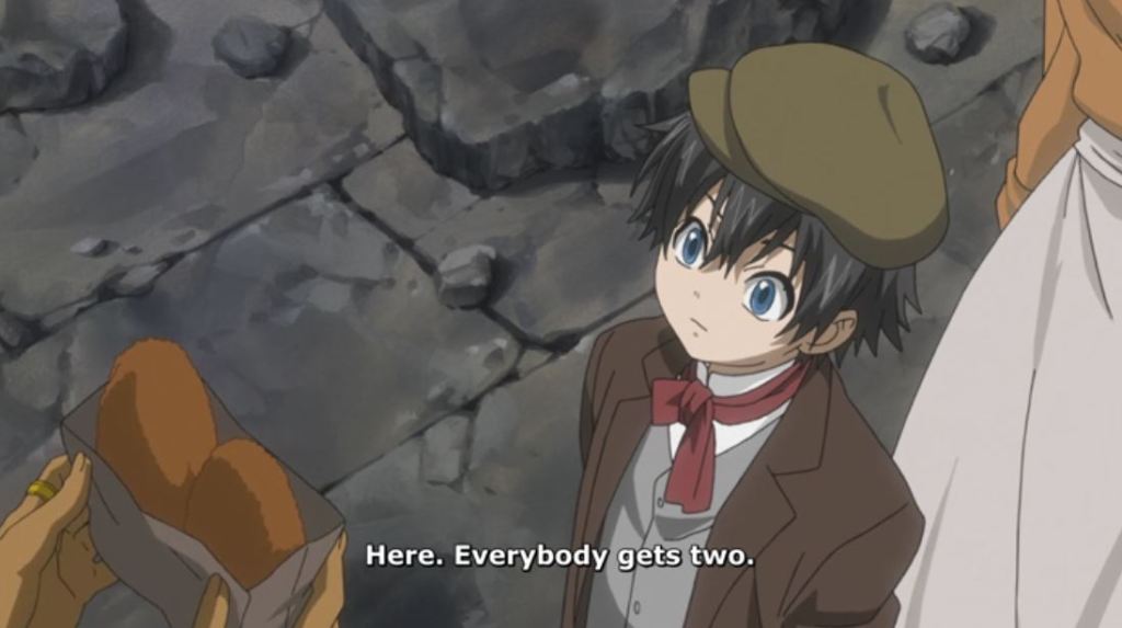 Earlier in the season, Ciel met Prince Soma and Agni. Ciel’s words to the Prince were harsh, but he was trying to open up his eyes to the world around him. Sebastian and Agni entered a curry contest. Agni was impressed with Sebastian’s winning entry, curry buns. Wanting to help London recover, the Prince and Agni give free curry buns to those in need (recipe inspired by Sebastian). The boy in line reminds me of Ciel (he’s the same boy who gave Ciel and Abberline clues to Ash’s involvement with the crime). Ciel, and even Sebastian, were such positive influences on Prince Soma and Agni that they wanted to pay it forward. I’m sure their sentiments were among the blue lights Ciel saw upon his death. Perhaps Abberline was right when he said, “what changes the world is people’s faith that tomorrow will be better, that they can make it better.”