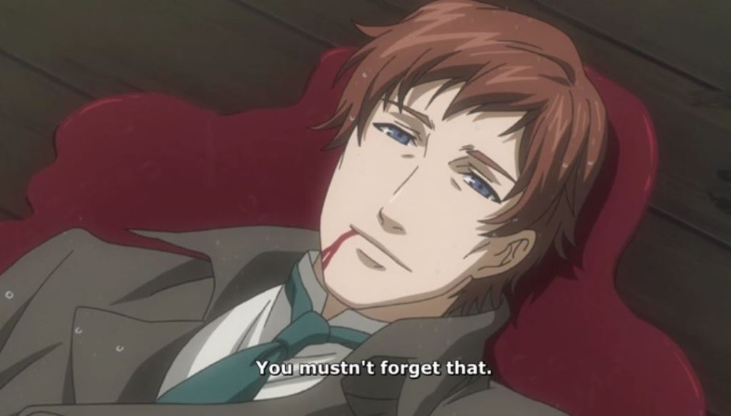 What I failed to realize was…the anime did not follow the manga. And my queasy feeling was correct. As I thought, Abberline dies. He was on the receiving end of a sword stab meant for Ciel.