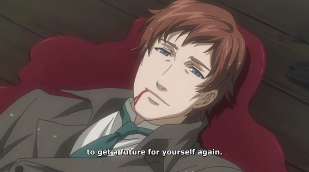 The thing is, the thing which we know as the viewers, is Ciel doesn’t have a future. If he hadn’t asked for Sebastian’s help, he would’ve been murdered by the cult, and unable to seek justice for his parents. Ciel made a pact with the devil. He’s already given up his soul, and his future. Abberline’s sacrifice seems like it was in vain, but knowing his character, he would’ve given his life for Ciel regardless.