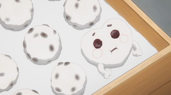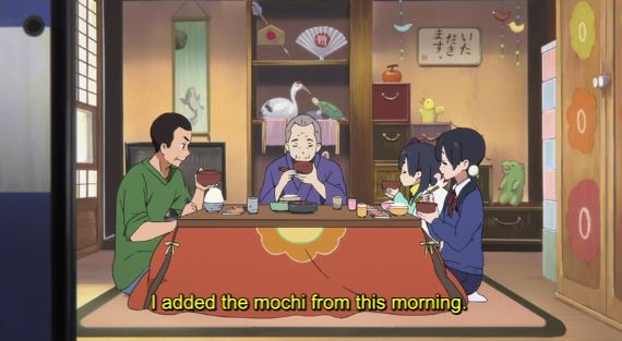 In this episode, Tamako and her father butt heads regarding the way their shop should celebrate Valentine’s Day. Tamako believes their mochi shop would have a sales boost if they incorporated Valentine’s Day themed menu options. Even her grandfather seems in the spirit, despite his son’s reservations.