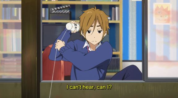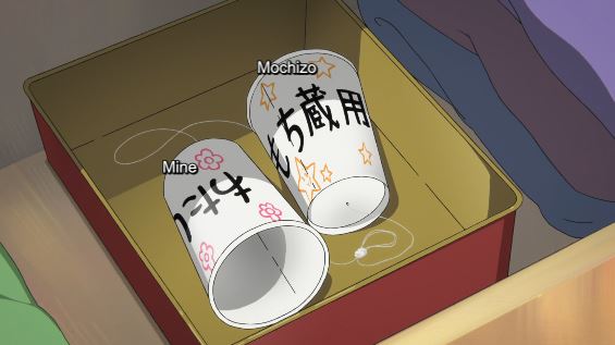 Tamako and Mochizou used their cup phone to discuss their plan to liven up the shopping arcade. Later, at the meeting with all the shop owners, Mochizou had the idea for a commercial. He worked really hard on the commercial with Tamako, their friends, and the shop owners, to showcase their Valentine marketing and sales.