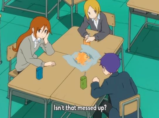 In this way, Hori reminds me of Yukino Miyazawa from His and Her Circumstances/Kare Kano. When it comes to integrity and character, Hori is the same person. But she acts embarrassed over trivial things, that I wouldn’t think requires her to feel ashamed, or that she has to hide it. Not wearing makeup at home, watching horror films, and beating five guys at arm wrestling doesn’t sound embarrassing to me (although as mentioned earlier, I have no tolerance for scary horror films, my reaction would be similar to Miyamura’s!).