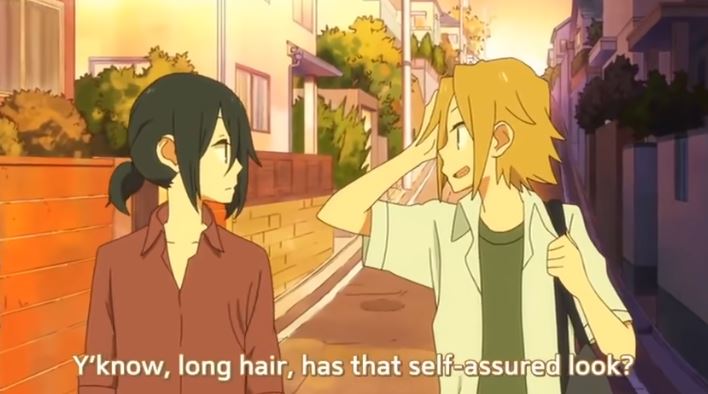 We also meet Shindou and I love how he describes Hori as self-assured. What does that look like? Is it how one carries themselves? Their posture? What they wear? Eye contact? Body language? All of the above? The energy they radiate? I agree with Shindou’s description of Hori, she carries herself with confidence, and is sincere in her interactions with others.