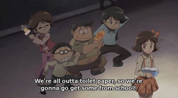 I stumbled upon Ghastly Prince Enma Burning Up / Dororon Enma-kun Meeramera on VRV/Crunchyroll. I was intrigued so I watched the first episode. It is so cheesy, but it was worth a few chuckles. In the first episode, Harumi is trying to help her friends. They snuck into school for toilet paper (???) but ran across a spirit of ill intent. Harumi is frightened, and almost drowns in the school pool, but is saved by a kappa named Kappavier.