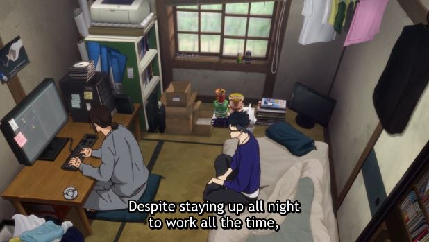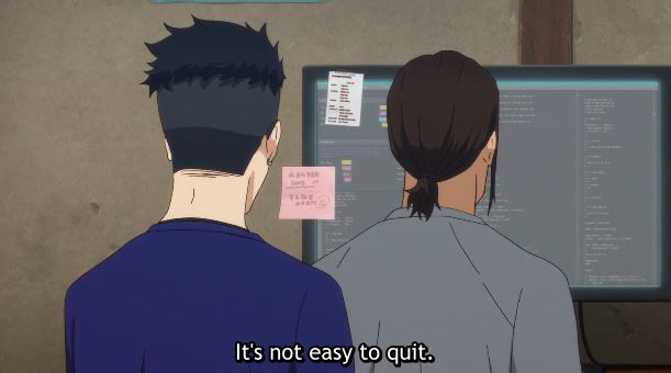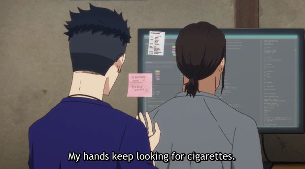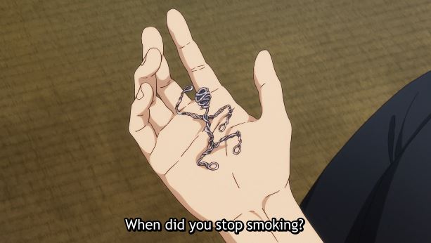 Akihiro Hirata tells Yukihiko Iwakura, that running has helped him prioritize his health. Hirata noticed he was short of breath while running so he quit smoking, and to keep his hands busy he has been creating wire figures.