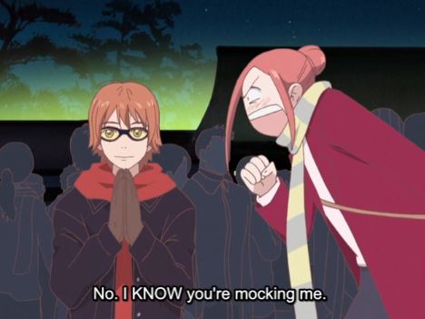 Takagi and Nishikata go to the festival, their very first date! I’m so happy that Nishikata finally stopped caring what other people thought, overcame his embarrassment, and ran off boldly in search of Takagi when they got separated in the crowd. But the MVP, of the last episode of Season 2, of Karakai Jouzu no Takagi-san / Teasing Master Takagi-san, was Kimura. He’s always been a great friend to Nishikata, and he picks up on subtleties, like the fact his pal was on a date with Takagi and was holding her purse. Kimura also helped Nishikata find Takagi after they were separated. Without him, we might’ve missed the sweetest moment of Season 2! Check it out on Netflix.